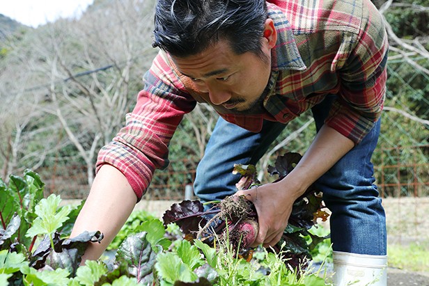 城戸さんは、福岡市内にある人気のイタリアレストランの料理人から32歳の時に農家へ転身。20代の頃は、イギリス・イタリアで数年間暮らした経験もある。就農4年目にして、ビーツ、フェンネル、根セロリなど年間100種もの西洋野菜を育てる。