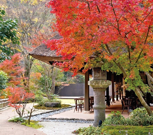 紅葉に包まれた昼の御料理 茅乃舎で、生演奏の音楽と特別料理を味わっていただく人気の「スローなる昼下がり」を開催いたします。