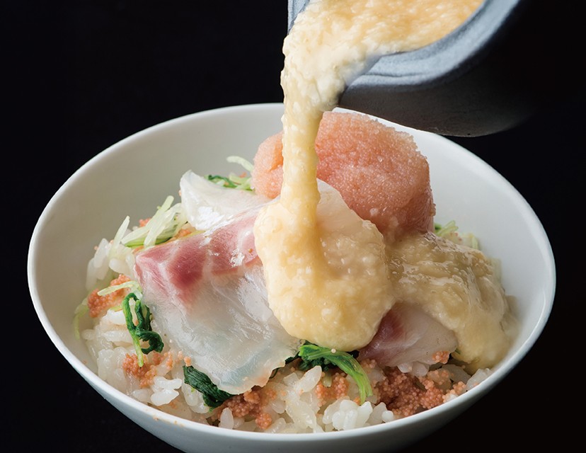 二つの博多名物、明太子と鯛茶漬けを合わせた椒房庵流ひつまぶしです。
