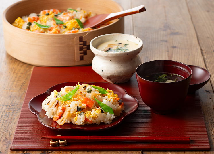 筍、牛蒡など6種の具を薄口醤油、本みりんなどで味つけした本格的な味わいです。ご家庭で手軽におつくりいただけます。