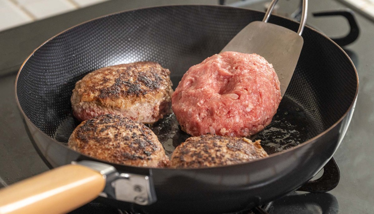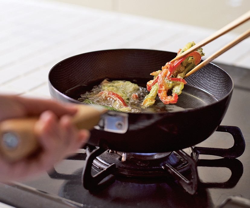 食材の味を逃がさないから、ソテーや炒め物が格段においしくなる鉄のフライパン。深さがあるため揚げ物にも対応します。焦げ付きを防ぐコツは、しっかり温めてから食材を入れ、すぐに動かさないようにすること。だんだんと油がなじみ、より使いやすく育っていきます。。